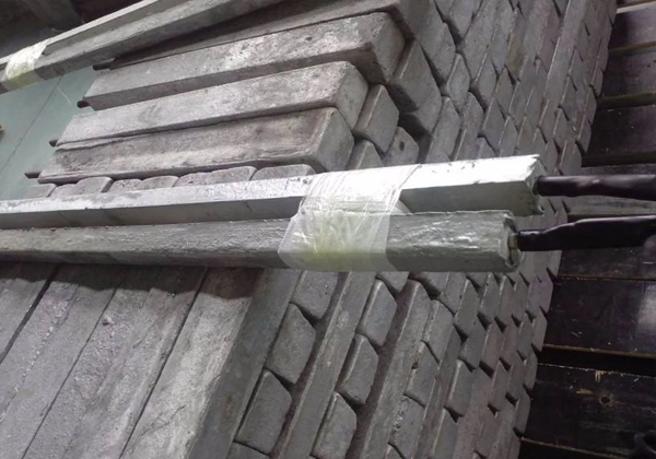 我公司生產(chǎn)的鋅接地電池由平行靠近的一對或四支鋅合金犧牲陽極棒組成,中間用絕緣墊塊隔開,然后一起裝在裝有填包料的棉布袋中,通過引出電纜焊接在絕緣裝置(絕緣接頭或法蘭)的兩側,以防止強電沖擊引起的損壞,同時日常情況下接地電池也可對管道起保護作用。